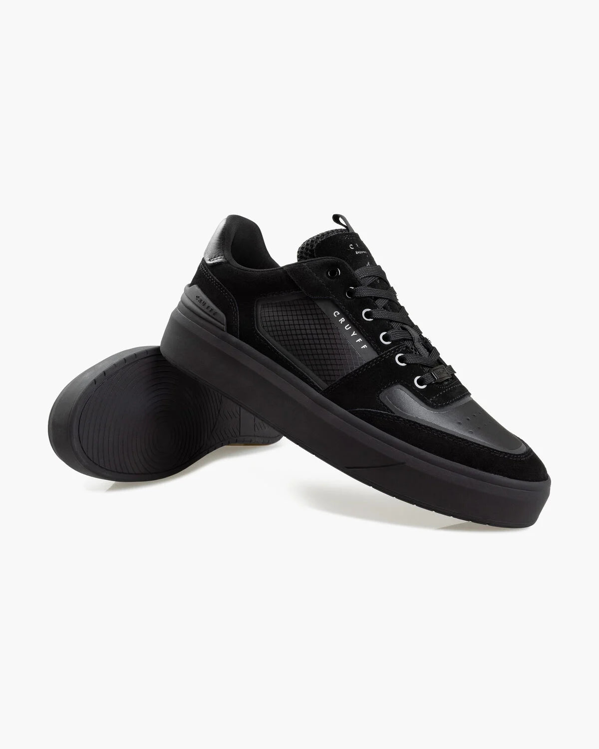 The Cruyff Endorsed Tennis in Black for men. Built from soft leather and reflective elements, this court-inspired sneaker honors Johan Cruyff's spirit with clean lines and bold intent. It features a removable cushioned insole and custom lace tag, all anchored by a branded RB cupsole with spoiler for a confident finish.