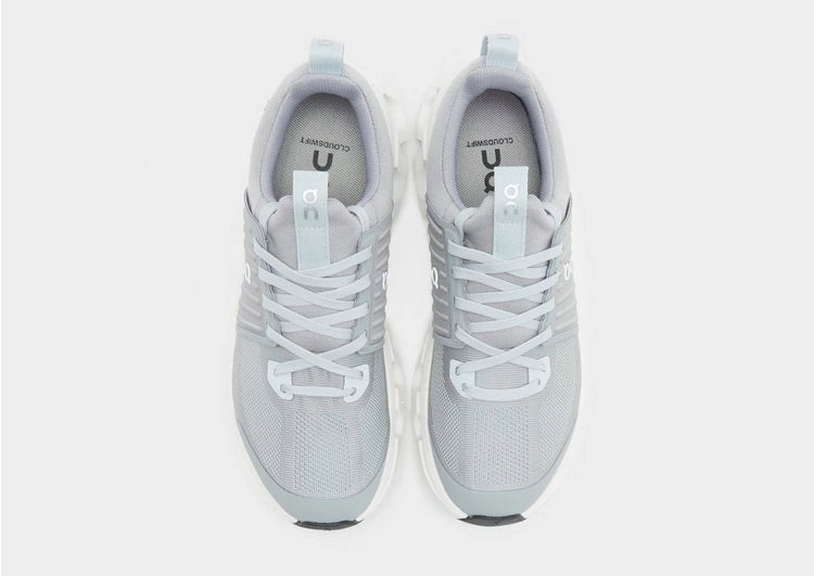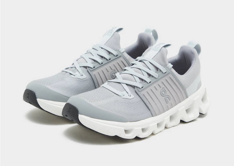 Go for miles with these Cloudswift trainers from On Running. In an Alloy and Glacier colourway, these runners have a breathable mesh base with a flexible cage and synthetic overlays to the upper for lasting wear. They feature a lace fastening to keep you locked in, while heel and tongue pull loops provide easy on-and-off. Underfoot, dual density Helion superfoam has CloudTec cushioning for a responsive ride, while the rubber outsole provides total traction. Finished up with signature On Running branding throughout.