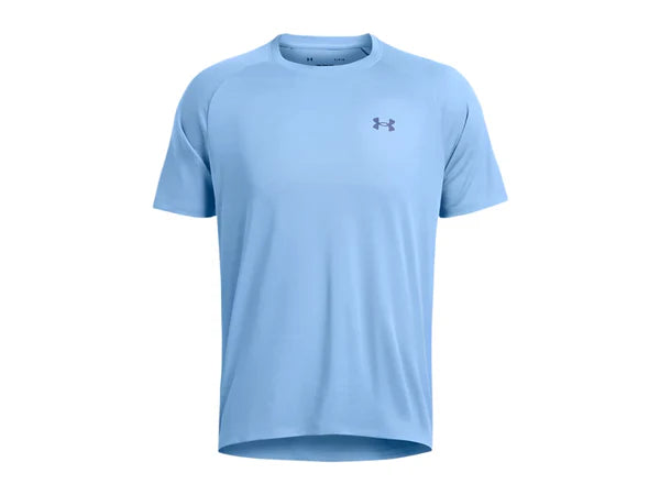 The mens Tech Textured T-shirt is a great top to add to your casual wear or for working out in. The material wicks sweat, dries fast and feels natural. In a light blue, featuring a round neck and short sleeves. Finished with the classic Under Armour branding to the chest.